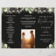 This elegant wedding trifold program features floral greenery and string lights on a black background. Designed by Thisisnotme©