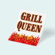 Churrasco engraçado da Rainha Grill dizendo em uma fonte flamejante ocidental para cozinheiros e cozinheiros. Com arte gráfica de chamas vermelhas e laranja no fundo do design.