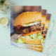 Close up de delicioso hambúrguer fresco com queijo e bacon