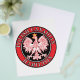 Mostre seu orgulho de Polônia na sua cidade natal no Canadá ou na cidade natal de seus ancestrais. Esta bela design redonda apresenta a águia branca polonesa traçada em vermelho e as palavras canadense polonês e Hamilton em um anel vermelho.