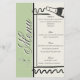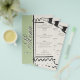 This sleek minimalist design is elegant and perfect! The clean lines make the day all about you while showcasing class and attention-to-detail. The front showcases script calligraphy text, apart from the word "menu" the text is fully customizable. Other tiny details apart from the light and dark color block style are the sweet little hand drawn details. The wine bottle, and bow on the front. If you want to change the word "Menu", reach out and let me know what you'd like. This design has space for all the basics, AND you have space to add more if you need it. The front is beautifully framed and the back has beautiful pin stripes and a tiny frame where you can add the initials of your couple, along with a sweet hand-drawn style strawberry.