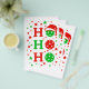 Design de picleball festivo com "Ho Ho Ho" em vermelho e verde com almôndegas substituindo a letra "O", uma vestindo um chapéu de Papai Noel. Cercado por estrelas de férias, este design é perfeito para amantes de picleball que querem espalhar alegria de Natal para dentro e para fora do campo.