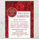 Informações gerais sobre Rosas vermelhas, Folheto de anúncios sobre flores da Cartão de visita.