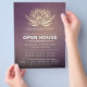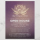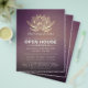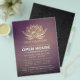 Instrutor de Meditação do Yoga Studio / Treinador de Vida / Healer / Mestre de Reiki / Modelo de Panfleto de Massagem Open House - Lótus Dourado Faux Moderno Elegante em Púrpura Grunge.