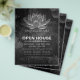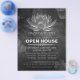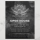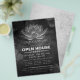 Instrutor de Meditação Yoga Studio / Treinador de Vida / Healer / Mestre Reiki / Modelo de Panfleto de Massagem Open House - Lotus Branca Moderno Elegante sobre Fundo de Grunge Preto de Watercolor.
