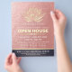 Instrutor de Meditação do Yoga Studio / Treinador de Vida / Healer / Mestre de Reiki / Modelo de Folheto de Massagem Aberta - Lótus de Foil Ouro Faux Moderno Elegante em Fundo de Textura Dourada de Rosa.