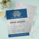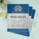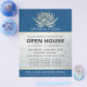 Instrutor de Meditação do Yoga Studio / Treinador de Vida / Healer / Mestre de Reiki / Modelo de Panfleto de Massagem Open House - Lótus Dourado moderno e elegante no PANTONE 19-4052 TCX Clássico Azul Cor Azul Fundo.