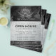 Instrutor de Meditação Yoga Studio / Treinador de Vida / Healer / Mestre Reiki / Modelo de Panfleto de Massagem Open House - Lotus Branca Moderno Elegante sobre Fundo de Grunge Preto de Watercolor.