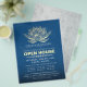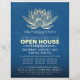 Instrutor de Meditação do Yoga Studio / Treinador de Vida / Healer / Mestre de Reiki / Modelo de Folheto de Massagem Aberta - Lótus Dourado Faux moderno Elegante em 19-4052 TCX Azul Clássico Cor Grunge.