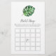 Este bingo de brida de palma tropical selvagem é perfeito para um chá de casamento de tema de praia. A design apresenta um conjunto exótico de folhas de palmeiras de banana-d'água verde, samambaias, folhagem, plantas botânicas e verde para uma sensação tropical de verão. Personalize a parte traseira da placa com o nome da noiva e a data do chá.