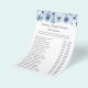 Torne o seu chá de panela inesquecível com este Cartão de Jogo de Calçado de Casamento Floral Azul Dusty. O lindo design floral de cor azul suave impressiona seus convidados e cria uma atmosfera na moda e elegante. O jogo de calçado apresentado no cartão é uma maneira divertida e envolvente de envolver todos na celebração. Este jogo é perfeito para todas as idades e certamente trará muitas risadas e alegria ao seu evento.