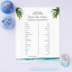 Flyer do Jogo de Chá de Noiva Tema Praia 'Would She Rather' apresenta praia, folhas de palmeira, água do oceano e modelos de perguntas personalizadas para o jogo de chá de noiva. Um design perfeito para o jogo de chá de noiva que combina com o tema praia, tropical e havaiano. Por favor, clique no botão personalizar para personalizá-lo com seu texto. Visite minha loja "loveyouart" para outros designs ou similares.