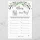 Onde Eles Estavam No Jogo Do Chá de panela. Este design apresenta uma ilustração das folhas de eucalipto e flores lavandas roxas no estilo aquarela. O texto "Onde eles estavam" é escrito em uma fonte Script. No topo - confetti de efeito prateado.