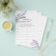 Jogo de chuva de presentes de noiva aquarela lavanda. Exiba 10 fotos do casal viajando e peça aos convidados para adivinhar onde o casal está em cada fotografia. A pessoa com mais respostas corretas é a vencedora!