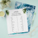Flyer do Jogo de Jantar de Noivado Tema de Praia 'Would She Rather' apresenta praia, folhas de palmeira, água do oceano e modelos de perguntas personalizadas para o jogo de noivado. Um design perfeito para o jogo de noivado que combina com o tema de jantar de noivado de praia, tropical e havaiano. Por favor, clique no botão personalizar para personalizá-lo com seu texto. Visite minha loja "loveyouart" para outros designs ou similares.