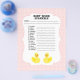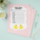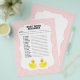 Este é um item divertido para usar em chás de bebê. Ele fornece uma lista de itens comumente usados para bebês, mas as letras estão misturadas. O primeiro a resolver a palavra desordenada vence. O verso está em branco para espaço adicional para escrever as letras das palavras e decifrá-las.