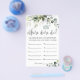 Modelo de água verde. Exibe 10 fotos do casal viajando e os convidados adivinham onde está o casal em cada fotografia. A pessoa com as respostas mais corretas é a vencedora!