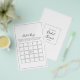 Este jogo de bingo de noiva minimalista é perfeito para um simples chá de casamento. A design romântica moderna apresenta a tipografia clássica, em preto e branco, emparelhada com uma caligrafia rústica, mas elegante, com estilo voltado para a mão. Personalizável em qualquer cor. Mantenha o design simples e elegante, como está, ou personalize-o adicionando seus próprios gráficos e trabalhos de arte. Personalize a parte traseira da placa com o nome da noiva e a data do chá.