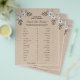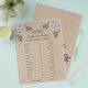 O folheto do Jogo para Chá de Noiva "Would She Rather" da Rustic Kraft apresenta fundo Kraft marrom, arranjo floral e modelos de perguntas personalizadas para o jogo de noiva. Um design perfeito para o jogo de chá de noiva que combina com a maioria dos temas rústicos de chá de noiva. Por favor, clique no botão personalizar para personalizá-lo com seu texto. Por favor, visite minha loja "loveyouart" para outros designs ou similares.