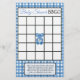 Jogos de chá de fraldas com o tema Elefante Xadrez Azul. O lado um é o Chá de fraldas Bingo e o lado dois é, "Quem conhece melhor a mamãe?"
