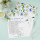 Jogos personalizados de chá de panela personalizados da margarida azul e branca (O Jogo Recém-casado na frente e Quem Conhece a Noiva do Melhor nas costas). Esta folha de chá de panela de casamento azul, amarelo, verde e branco das margaridas é uma boa escolha para um chá de casamento de verão ou um chá de casamento de primavera. Esta folha de chás de casamento de margarida camomila ou margarida shasta é personalizada e apresenta belos buquês de pétalas brancas de cor aquática, margarida central amarela com flores azuis e folhas verdes. Esta folha de chá de panela de casamento da margarida tem um excelente de aspecto rosa, então é perfeita para um chá de panela estilo country. Dois jogos em um! Outras personalizações são possíveis (fonte, cor da fonte, cores de fundo, etc.), clicando em "clicar para personalizar o link" abaixo das opções de personalização. Entre em contato com o designer se quiser que qualquer outro item correspondente vá com este design que ainda não esteja incluído na coleção.