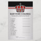 Jogos para chá de bebê do príncipe com caça-palavras em um lado, e teste de rimas infantis no outro. Este convite para o chá de bebê com coroa de príncipe em vermelho, preto e prata é divertido e econômico! Você pode remover a camada preta para um fundo de prata puro. Você pode mudar as perguntas e as palavras. Distribua-os aos seus convidados dizendo-lhes para não olhar, então inicie o cronômetro. Quando o tempo acabar, leia as respostas e a pessoa com mais respostas certas ganha um prêmio. Você pode até adicionar as palavras e rimas de sua escolha!
