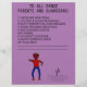 Professores de dança - lembrem seus pais de dança e guardiães legais para diminuir o fanatismo e conter seu entusiasmo por seus alunos de dança com aqueles folhetos - prontos para serem agrafados nos manuais de estúdio de dança! Com algum texto personalizável, eles vão avisá-los que ser profissional não importa para a educação de dança das crianças. O prazer da forma de arte e os benefícios que não têm a ver com dançar em um cruzeiro, com uma tripulação de salto de quadril, numa produção teatral, ou com uma empresa balé REALMENTE. Personalize o texto em todos os bonés. Lavanda de fundo. Tem um rapaz dançando com cabeça de maçã.