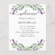 Por favor, note que este convite está no papel de folheto e é muito fino. Fundo branco elegante, decorado com flores de lavanda, flores e verde de eucalipto. Personalize e adicione seus nomes e sua linha do dia do casamento.