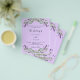 Por favor, note que este convite está no papel de folheto e é muito fino. Os envelopes não estão incluídos. Para convites mais espessos (mesmo design) visite nossa loja. Um fundo violeta decorado com flores de lavanda e verde de eucalipto. Personalize e seus nomes e detalhes. Voltar: adicione seu URL da Web ao seu site de casamento para RSVP e mais detalhes.