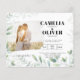 Um convite para casamento elegante e moderno que lhe permite adicionar uma foto de noivado de casais. Apresenta uma imagem de sobreposição verde folheada. Perfeito para matrizes de folhagem verde. Campos de tipografia em ambos os lados e um código de verificação QR. ⭐ Este convite de casamento completo inclui campos de modelo de texto em ambos os lados, permitindo que você adicione sua cerimônia de casamento, recepção, RSVP, registro de presentes e informações de acomodação sem comprar gabinetes e artigos de papelaria extras. Esta seleção garante um alternativo orçamental de elevada qualidade, ao mesmo tempo que economiza dinheiro e é ecologicamente responsável. Menos folhas de papel equivale a menos lixo! Você pode usar a ferramenta TRANSFERIR para transferir este design para outras mercadorias ou acessar o serviço LIVE DESIGNER da Zazzle através das opções no seu site para obter ajuda criativa. Vale notar que você pode incluir um código de verificação QR com este convite. Se você não precisar disso, basta remover a imagem ou substituí-la por um logotipo, gráfico, monograma ou foto. Zazzle tem muitos recursos de personalização para ajudá-lo a ser criativo e design sua própria papelaria de casamento. Nossos convites para o casamento são apropriados para todas as estações, incluindo verão, primavera, outono, outono e inverno. São excelente de casamentos mantidos fora, dentro, na praia, num celeiro, no campo, numa montanha, num lago, na floresta ou na floresta. ⭐ Aproveite sua aventura de planejamento de casamento, salve e siga nossa loja, e coloque seus conselhos de Pinterest. ⭐