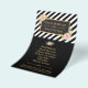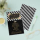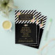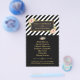 Este é um belo folheto para qualquer promoção de pequenas empresas com fundo de listras pretas e moldura dourada com floral aquarela