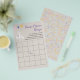 Este adorável bingo de chá de fraldas Llama Mama é um excelente de quebra-gelo para seus hóspedes se divertirem e competirem entre si tentando ver quem pode adivinhar os presentes da futura mãe. A design apresenta uma lama de mamã e bebê, juntamente com texto roxo e preto sobre fundo bronzeado.
