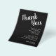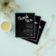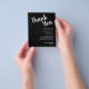 Folhetos de papel leve de 4,5" x 5,6" com orçamento preto de barato apresentam seus detalhes em caracteres brancos. Estes lugares são perfeitos para colocar em cima dos pratos no seu janto de ensaio de casamento ou na sua recepção de casamento.