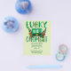 Sortudo e eu Gnomo Dia de São Patrício Flyer. Engraçado citar uma imagem com um grande chapéu verde e dois gnomos vestindo xadrez verde. Xadrez verde atrás. Personalize este modelo com suas informações de convite de festas. Entre em contato com a Sandy em admin@giftsyoutreasure.com