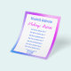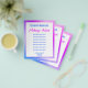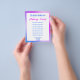 Você pode editar o texto de exibição para mostrar seu nome e os serviços que você oferece. Há também texto de exibição próximo à parte inferior para suas informações de contato. Todo o texto pode ser editado ou excluído. O panfleto tem uma borda de gradiente roxa e azul.