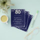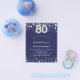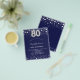 Por favor, note que este convite está no papel de folheto e é muito fino. Os envelopes não estão incluídos. Para convites mais espessos (mesmo design) visite nossa loja. Um convite moderno, na moda e glamouroso para uma festa de aniversário 80. Um fundo azul marinho, decorado com estrelas de falso prata. Personalize e adicione seu nome e detalhes da festa. O número 80 é gravado com uma fonte no estilo do balão.