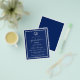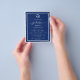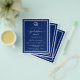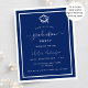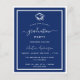 Por favor, note que este convite está no papel de folheto e é muito fino. Os envelopes não estão incluídos. Para convites mais espessos (mesmo design) visite nossa loja. Um convite moderno e elegante. Um fundo azul marinho decorado com quadros brancos e um boné branco. Personalize e adicione um nome e detalhes da parte. Texto branco.