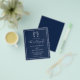 Este design de convite para casamento azul marinho mínimo de orçamento é perfeito para casamentos costeiros e náuticos e de destinos de praia, com dois cavalos-marinhos bonitos se beijando no topo, uma elegante caligrafia guiada, e um quadro ao redor da borda. Este convite para casamento costeiro é de tamanho menor impresso em papel mais barato, sem um envelope. Se você quiser outra versão do orçamento em um papel ligeiramente melhor, com um envelope que custe um pouco mais, entre em contato comigo através do Zazzle Chat, ou use a opção Transferir para uma "folha de papel simples" 4,5"x 5,6".