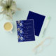 Por favor, note que este convite está no papel de folheto e é muito fino. Os envelopes não estão incluídos. Para convites mais espessos (mesmo design) visite nossa loja. Um fundo azul marinho, decorado com flores azuis e prateadas. Personalize e adicione seus nomes e detalhes. Fundo: fundo azul marinho.