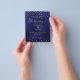 Por favor, note que este convite está no papel de folheto e é muito fino. Os envelopes não estão incluídos. Para convites mais espessos (mesmo design) visite nossa loja. Um fundo azul marinho decorado com ouros. A cor azul é irregular. Personalize e adicione seus nomes e detalhes.