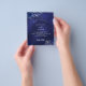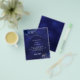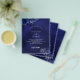 Por favor, note que este convite está no papel de folheto e é muito fino. Os envelopes não estão incluídos. Para convites mais espessos (mesmo design) visite nossa loja. Um fundo azul marinho, decorado com flores azuis, rosas. A cor azul é irregular. Personalize e adicione seus nomes e detalhes.