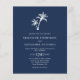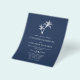 Este convite para casamento na praia é de tamanho menor impresso em papel mais barato, sem um envelope. O simples convite mínimo para casamento da costa tropical azul marinho apresenta duas palmeiras no topo, com texto elegante clássico. Se você quiser outra versão do orçamento em um papel ligeiramente melhor, COM um envelope que custe um pouco mais, entre em contato comigo através do Zazzle Chat, ou use a opção Transfer para transferir para uma "folha de papel simples" 4,5"x 5,6".
