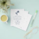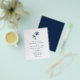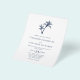 Este convite para casamento costeiro é de tamanho menor impresso em papel mais barato, sem um envelope. O simples convite para o casamento de praia tropical apresenta duas palmeiras no topo, com texto elegante clássico, num esquema de cores branco e azul marinho, com a coordenação do azul marinho no verso. Se você quiser outra versão do orçamento em um papel ligeiramente melhor, COM um envelope que custe um pouco mais, entre em contato comigo através do Zazzle Chat, ou use a opção Transfer para transferir para uma "folha de papel simples" 4,5"x 5,6".