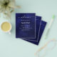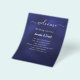 Por favor, note que este programa e menu estão em papel folheto e muito finos. Para programas/menus mais espessos (mesmo design) visite nossa loja. Um clássico programa de casamento e cardápio. Um fundo azul marinho. A cor azul é irregular. Texto branco. Personalize e adicione seu nome, data e programa e menu.