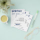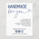 Instruções de lavagem inserem cartão para sua pequena empresa de bens feitos à mão. Feito para você, escrito em uma charmosa combinação de fonte e roteiro antigos com um coração em azul marinho. Adicione instruções de lavagem a preto. Abaixo dos marinhos de ícones azuis das mídias sociais, as suas redes sociais lidam com isso. Adicione uma foto de promocional atrás.