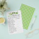 Matcha bridal Shower game "find the guest" template. The design includes a back design using green gingham. Make it your own by adding your own text and/or personal photos (front and/or back). To access advanced editing tools, please go to “Personalize this design”, scroll down and press the "Edit using Design Tool" link. For more matching designs click the link “Other products from this collection”.