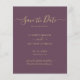Escrito elegante de orçamento minimalista moderno não fotográfico e casamento dourado salve a data anunciando o anúncio personalizado barato baixo orçamento. O simples modelo de design simples apresenta um elegante e cursivo script de tipografia com letras de mão "Salvar a Data" em ouro, na cor de fundo roxo de ameixa ou pó. ***POR FAVOR, NOTE! *** O PAPEL ORÇAMENTAL/FLYER É MAIS FINO DO PAPEL. NENHUM ENVELOPES INCLUÍDO.** UPGRADE O PAPEL PARA UM PAPEL MAIS ESPESADO. *** Cardstock tradicional com envelopes: https://www.zazzle.com/elegant_script_minimalist_mauve_and_gold_wedding_save_the_date-256887136912150444    Este cartão clássico é perfeito para um casal que quer salvar a data de forma tradicional com um toque moderno, sem uma foto. Se precisar de ajuda ou itens correspondentes, entre em contato com o designer.