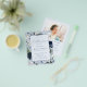 Este é um cartão de convite para o funeral elegante e moderno impresso num panfleto favorável ao orçamento para celebrar a vida do seu amado. A design apresenta uma bela fonte caligráfica e delicadas substâncias botânicas de azul, verde, branco e prata, com uma foto no verso. Este convite pode ser facilmente personalizado com sua própria foto e texto para criar um tributo especial para o funeral, memorial ou celebração da vida de seu ente querido usando o modelo fornecido. Entre em contato com o designer para obter informações sobre este design ou sobre produtos correspondentes.