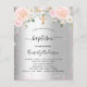 Por favor, note que este convite está no papel de folheto e é muito fino. Os envelopes não estão incluídos. Para convites mais espessos (mesmo design) visite nossa loja. Um convite moderno, na moda e glamouroso para um batismo celebrando uma menina. Um fundo metálico prateado falsa com brilho falso rosa, faíscas e florais cor-de-rosa. O nome é escrito com um moderno estilo escrito à mão. Personalize e adicione seus detalhes.