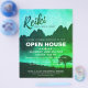 Modelo de Panfleto de Casa Aberta para Instrutor de Meditação em Estúdio de Yoga Elegante / Coach de Vida / Curador / Mestre de Reiki / Terapia de Massagem. Floresta Nebulosa Natural nas Montanhas.